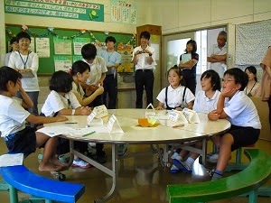 「県教育センター学びの丘」の3名の職員の方に講師として来校いただき、たんぽぽBでの研究授業をもとに、グループ協議等を実施することで、よりよい授業づくりについて研修を行いました。